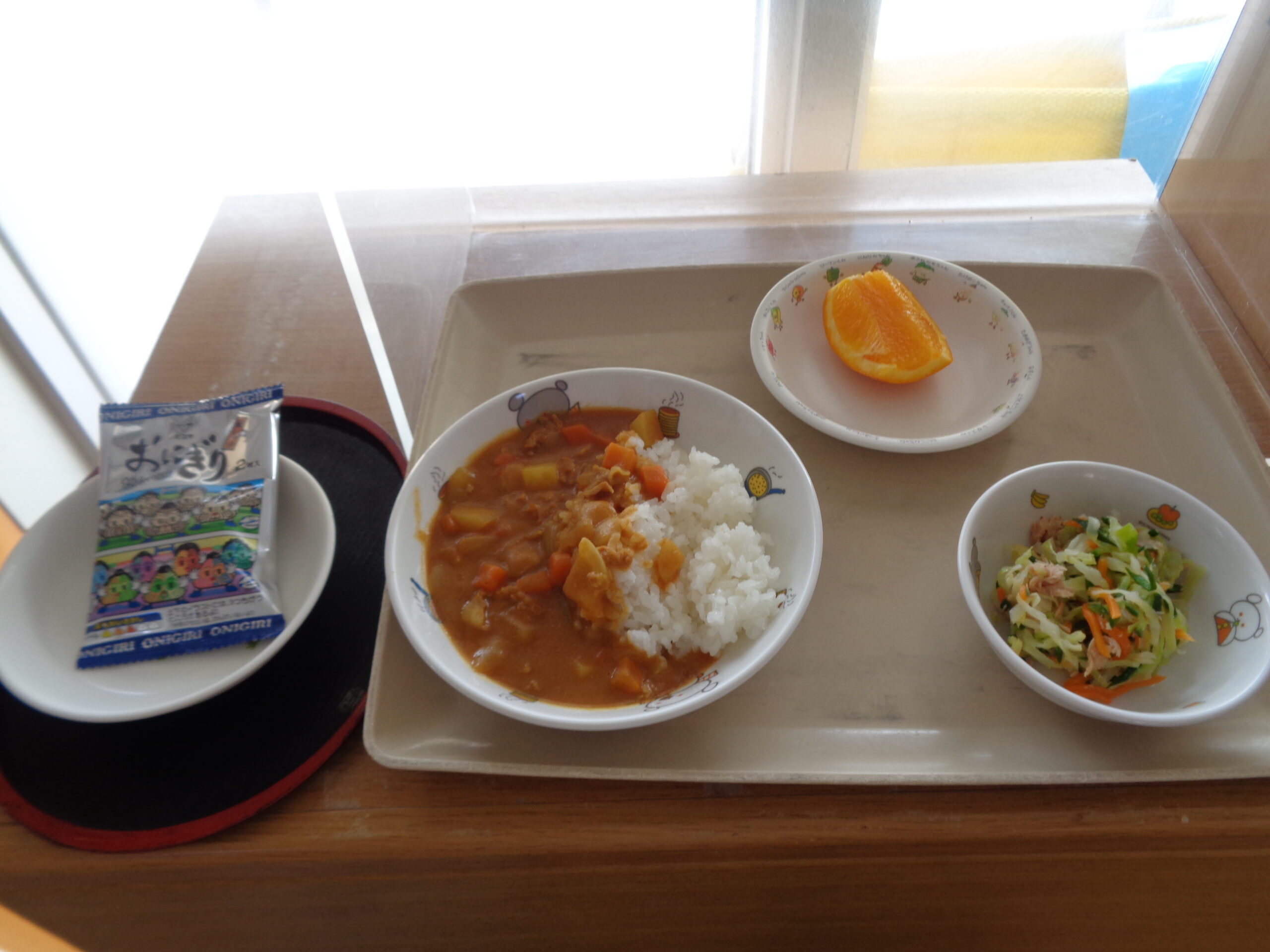 カレーライス ドレッシングサラダ オレンジ