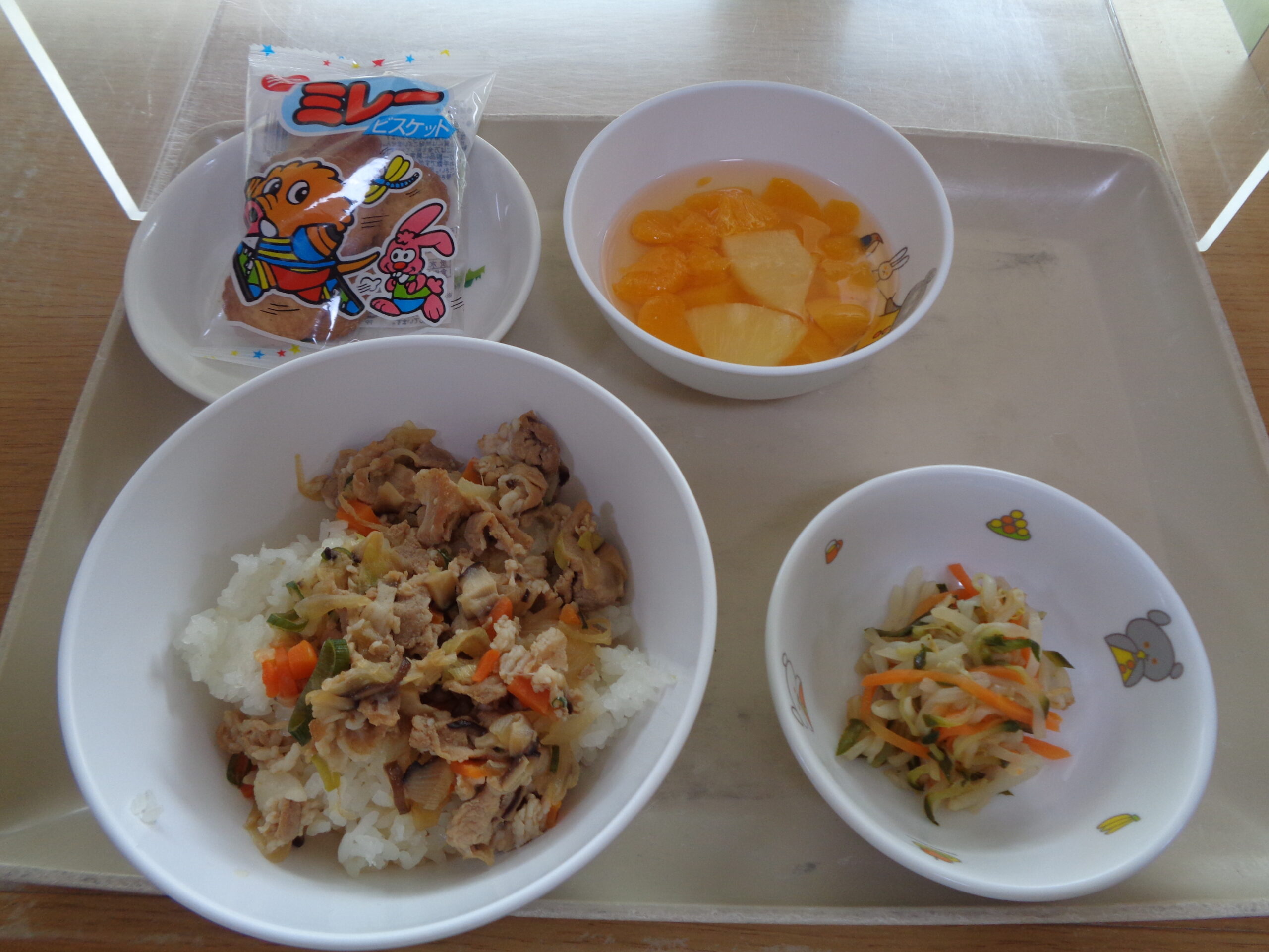 三色どんぶり 新玉ねぎとわかめの味噌汁 バナナ