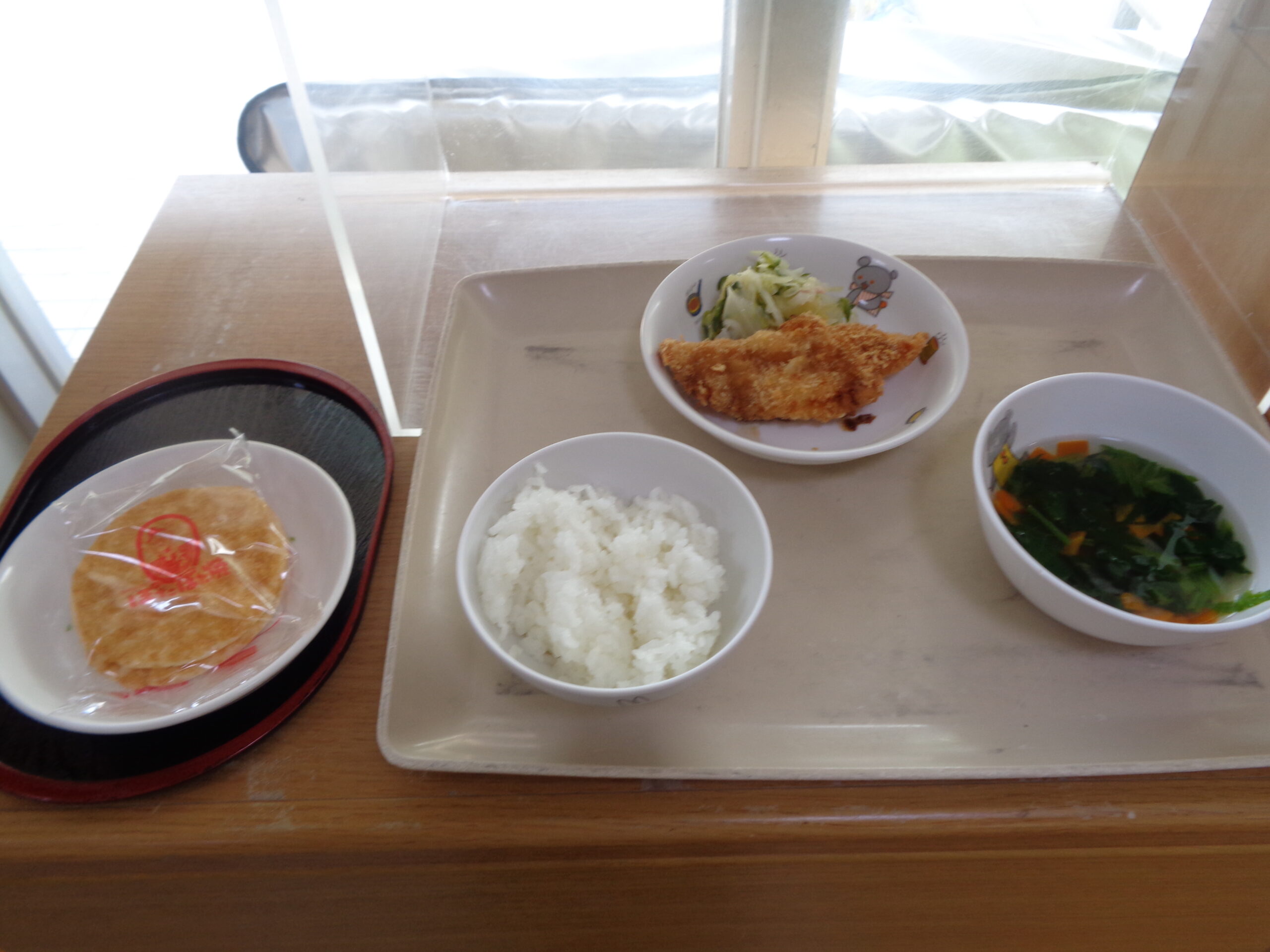 ごはん 白身魚のフライ パインサラダ