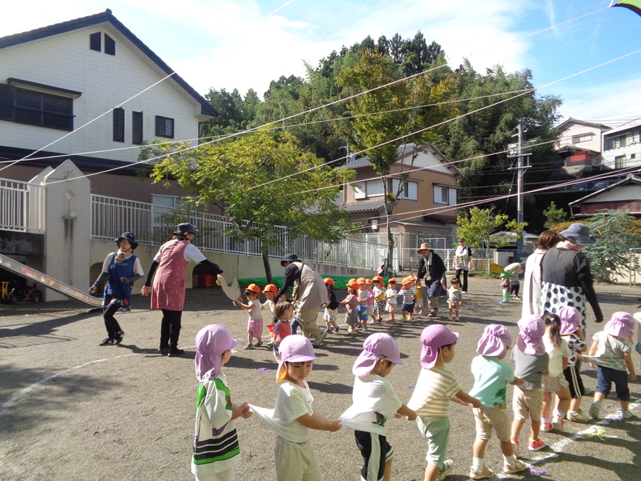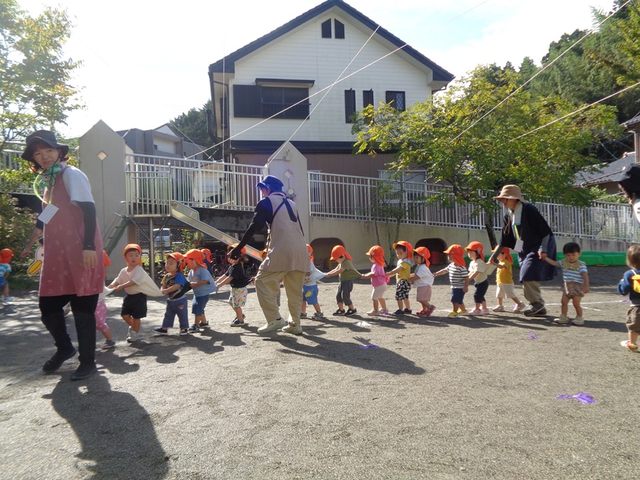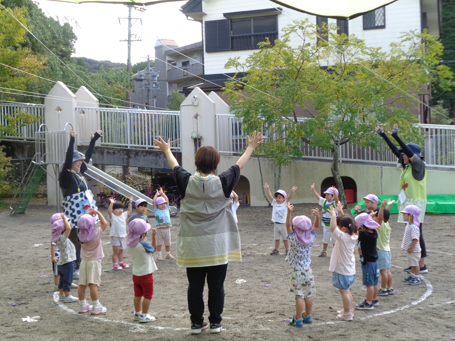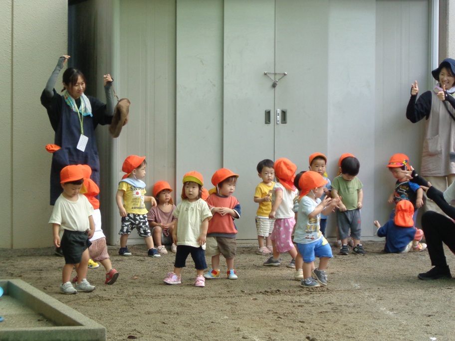 今日は天気が良くなったので、乳児(0.1.2歳児)が運動会の練習をしました。