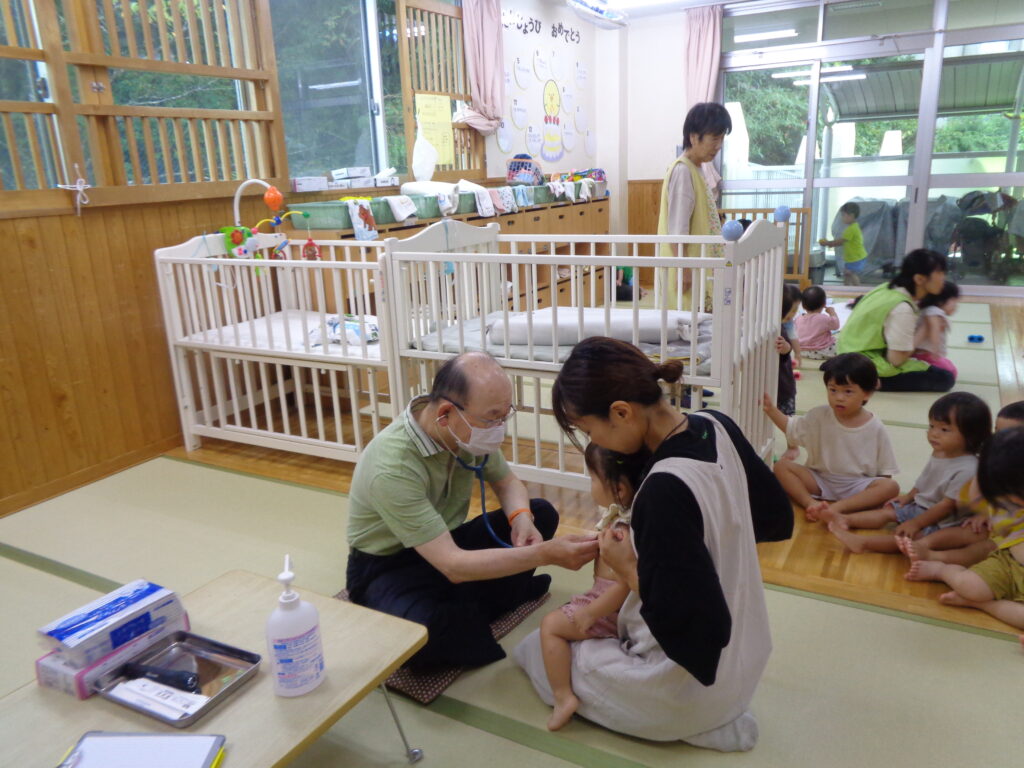 たけのこ保育園は年に2回園医の永井先生に一人一人検診をしていただいています。
