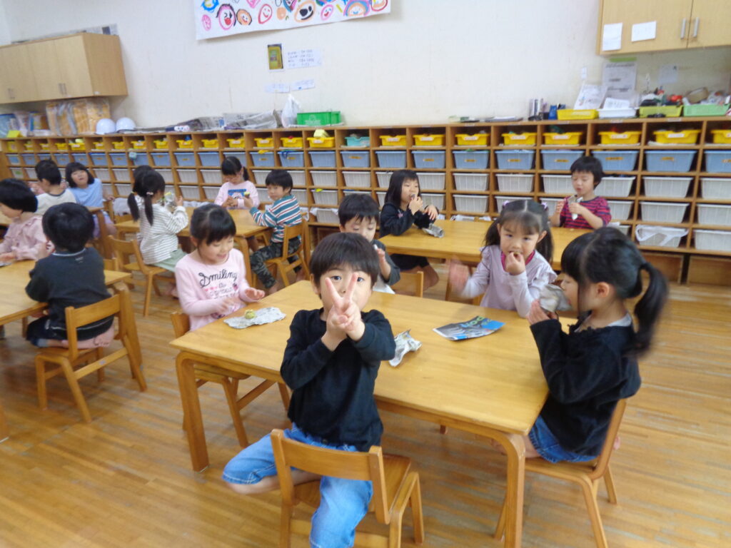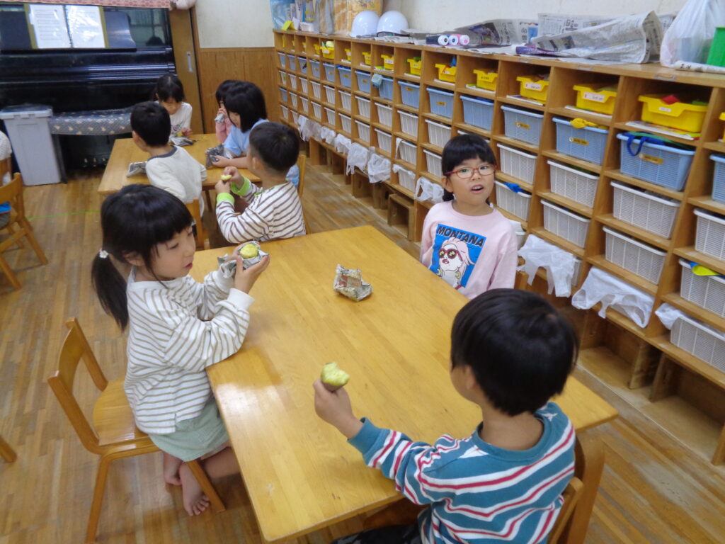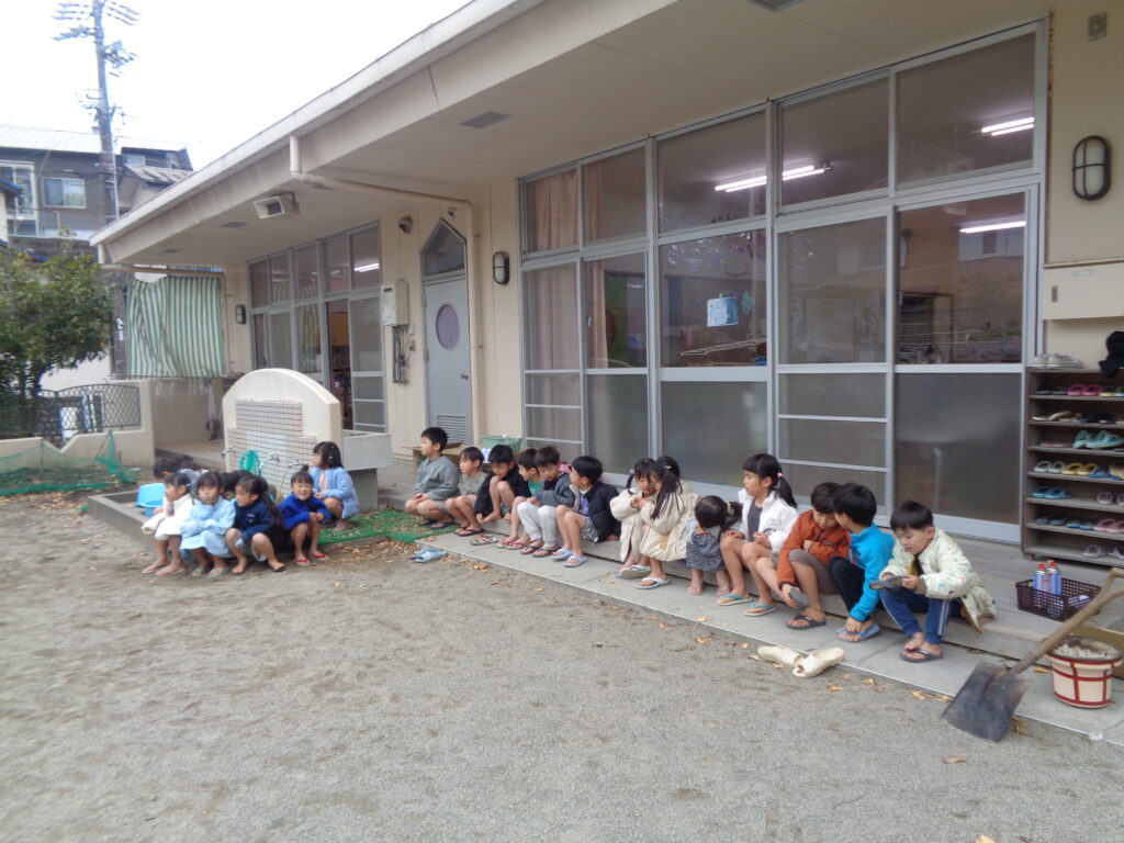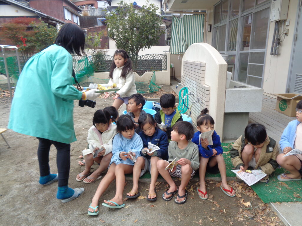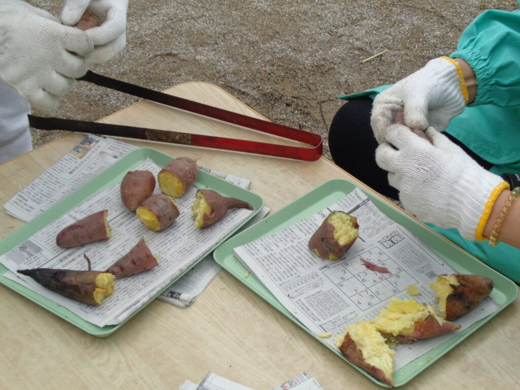 くま組主催の焼き芋大会をしました。ホクホクのおいしい焼き芋が焼け、