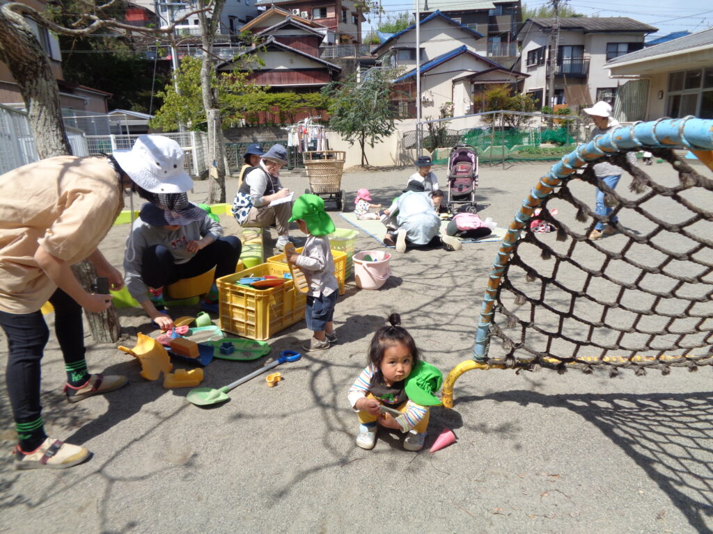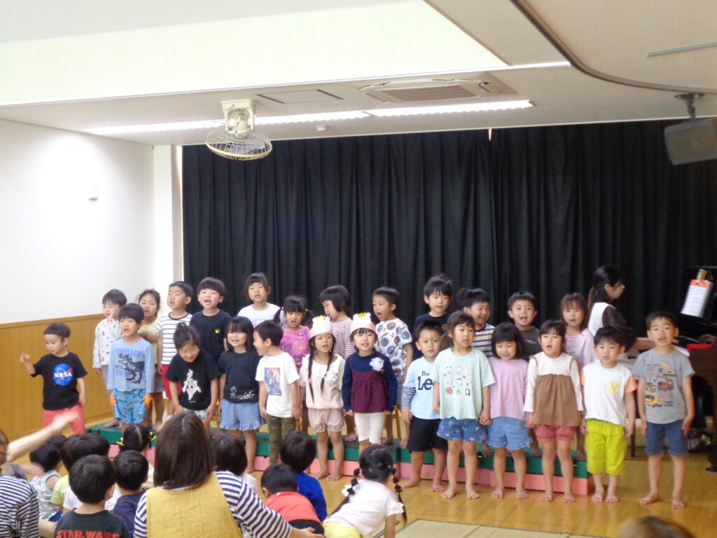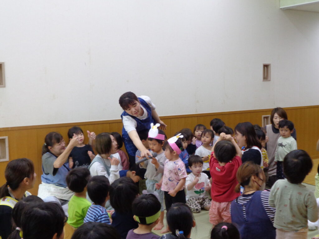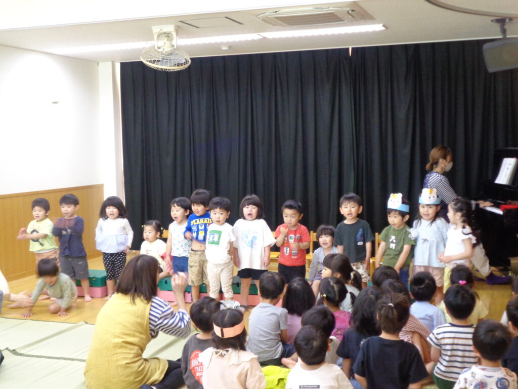 今年度初めてのお誕生会、4月生まれのお友だちをみんなでお祝いしました。プレゼントを渡し、クラスで歌を歌いました。初めて参加するうさぎ組さん(2歳児)も、上手に歌を歌いました。