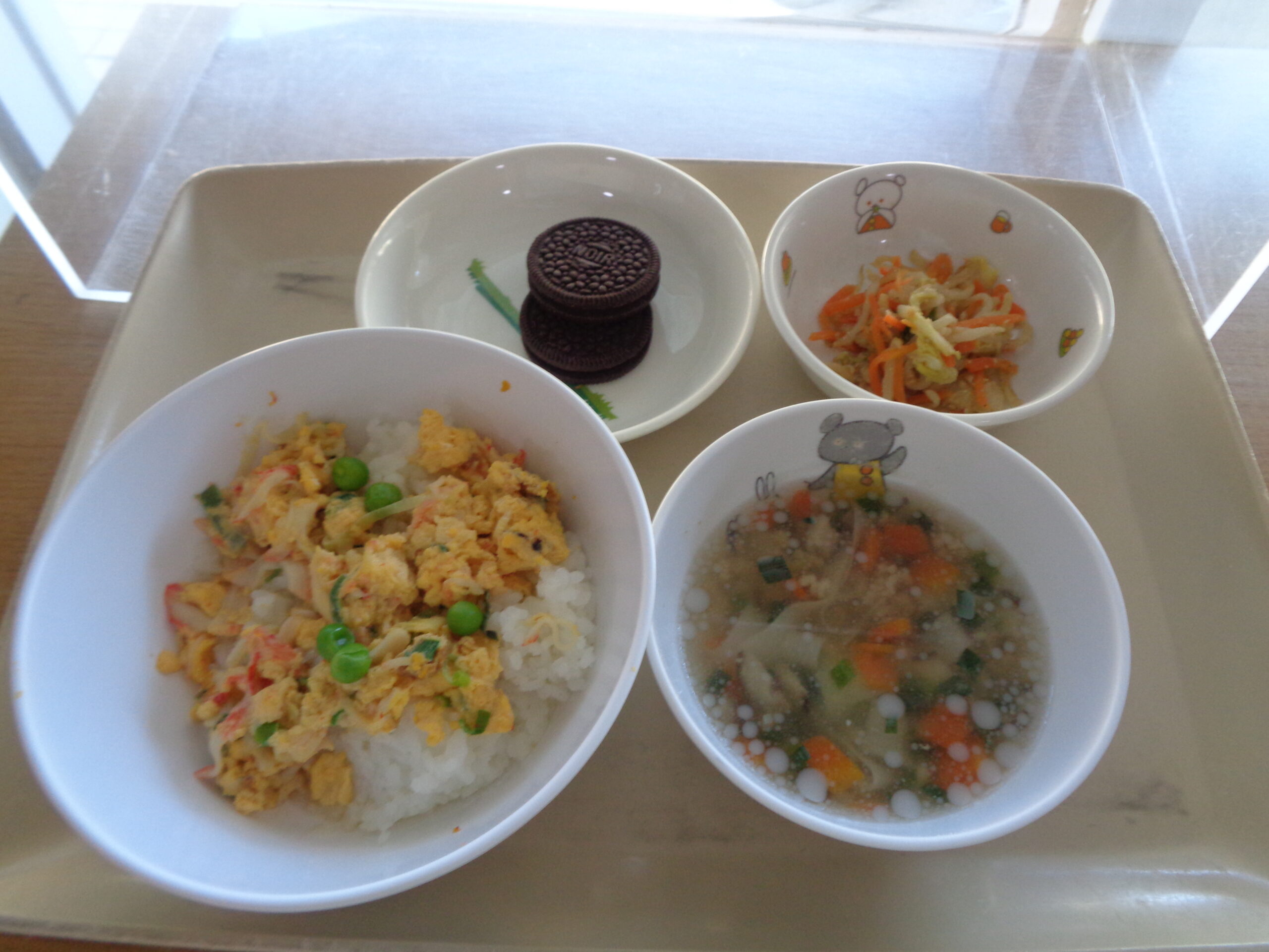 かに玉丼 野菜の中華和え ワンタンスープ