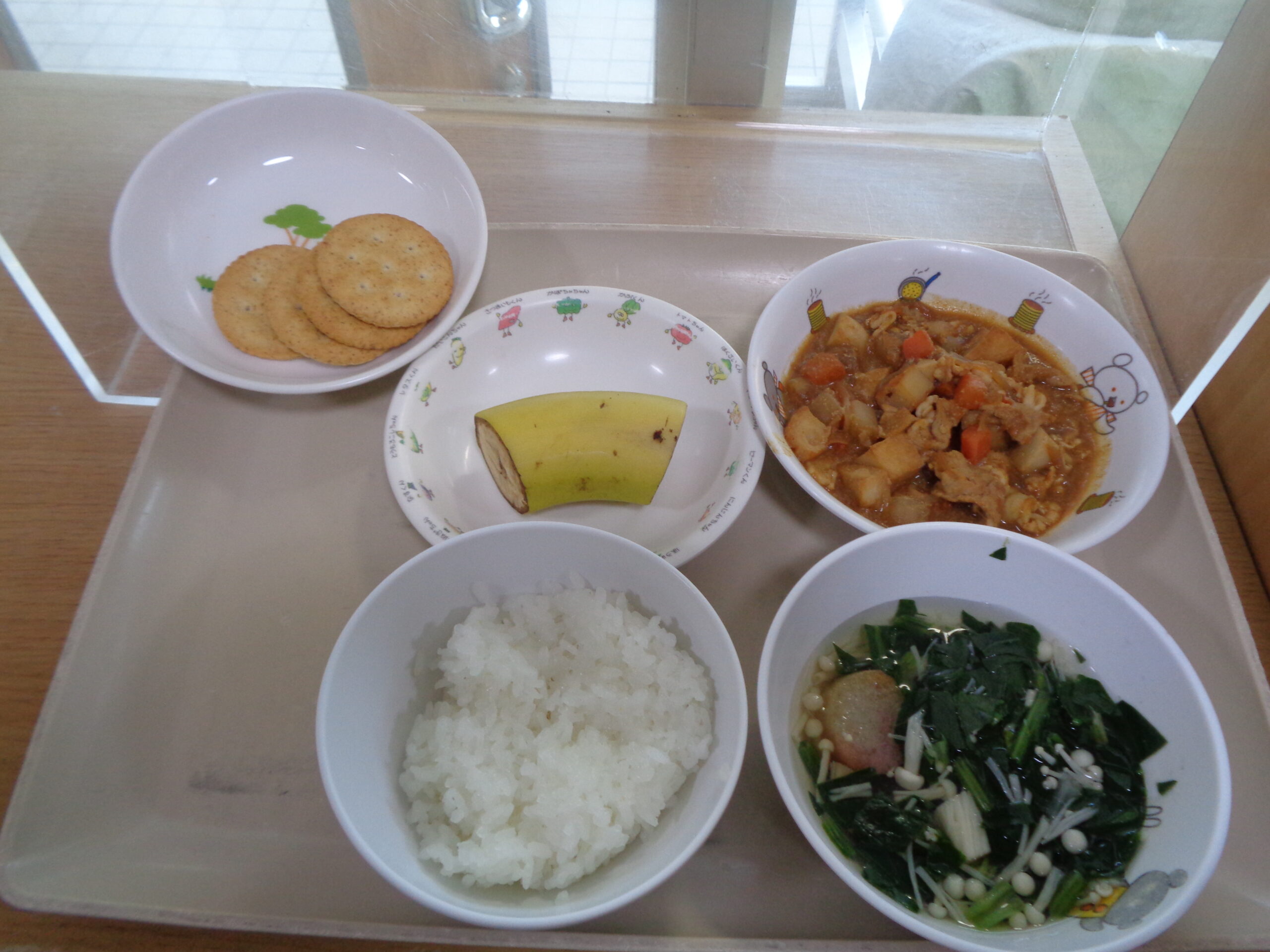 ごはん 野菜の味噌煮 青菜のすまし汁 バナナ