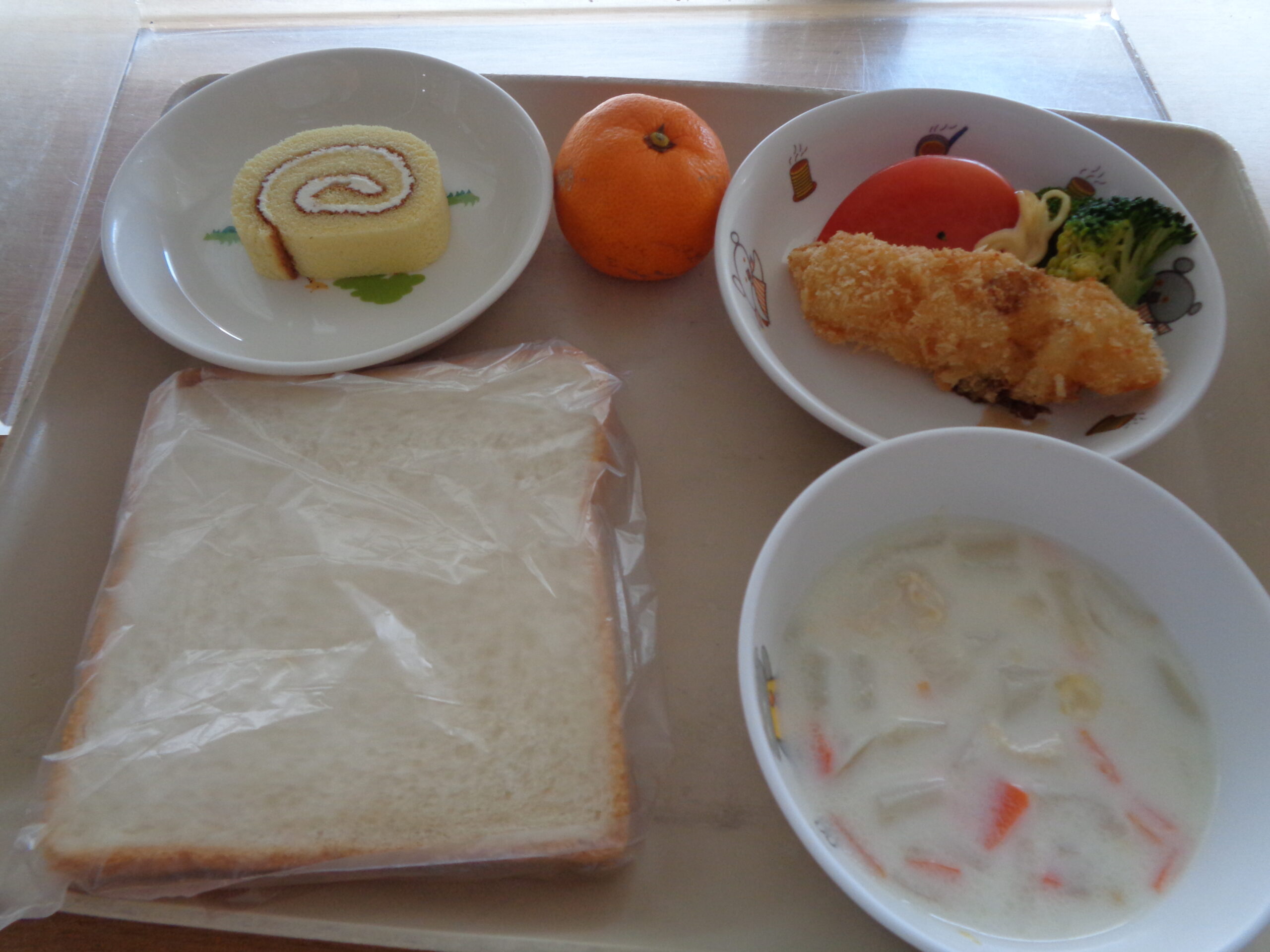 パン 白身魚のフライ かぶのミルクスープ