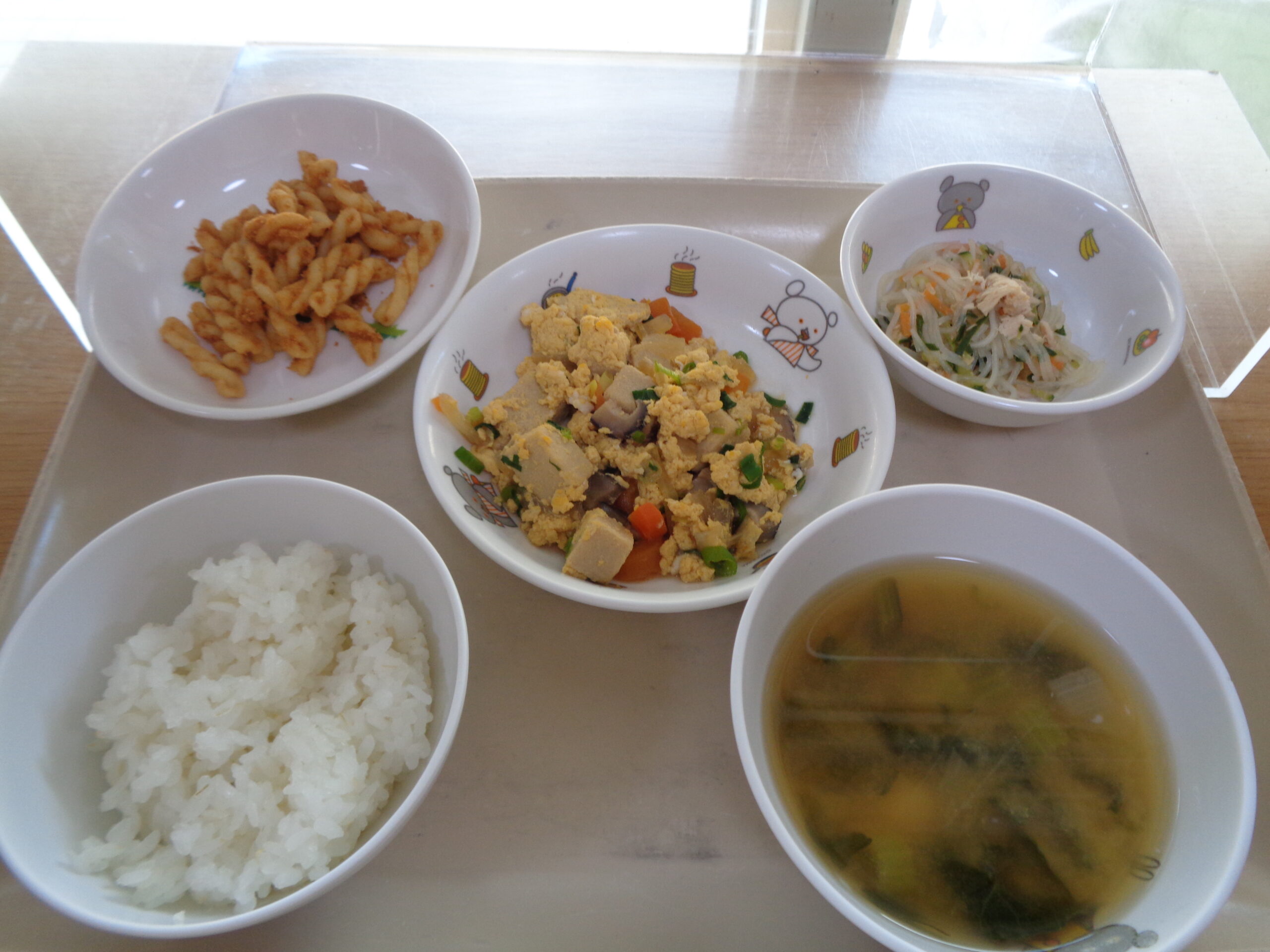 ごはん 高野豆腐の卵とじ 春雨酢の物